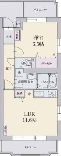 1LDK(LDK11.6帖・洋室6.5帖・洗面脱衣室・バスルーム・トイレ)