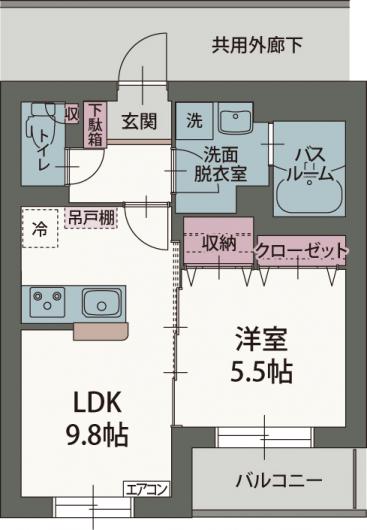 1LDK(LDK9.8帖・洋室5.5帖・バスルーム・トイレ・洗面脱衣室)