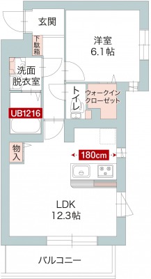 1LDK(LDK12.3帖・洋室6.1帖・洗面脱衣室・バスルーム・トイレ)