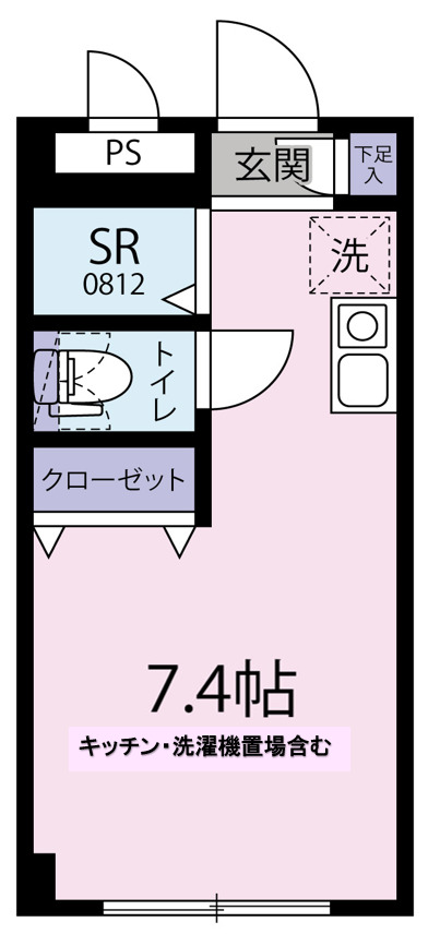 1ROOM(洋間7.4帖・シャワールーム・トイレ)
