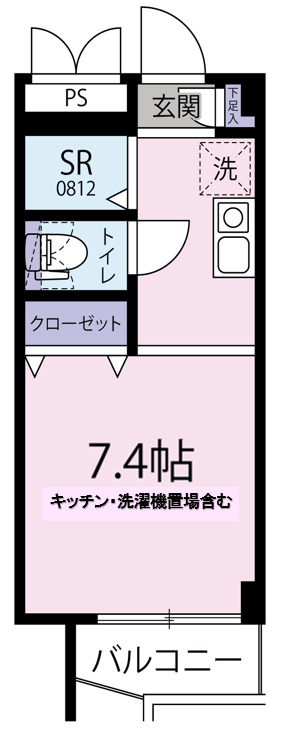 1ROOM(洋間7.4帖・シャワールーム・トイレ)