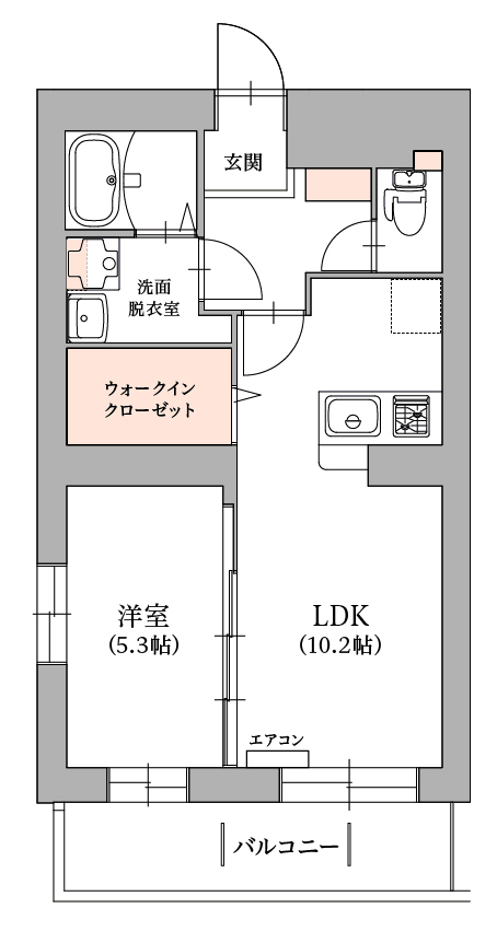 1LDK(LDK10.2帖・洋室5.3帖・洗面脱衣室・バスルーム・トイレ)